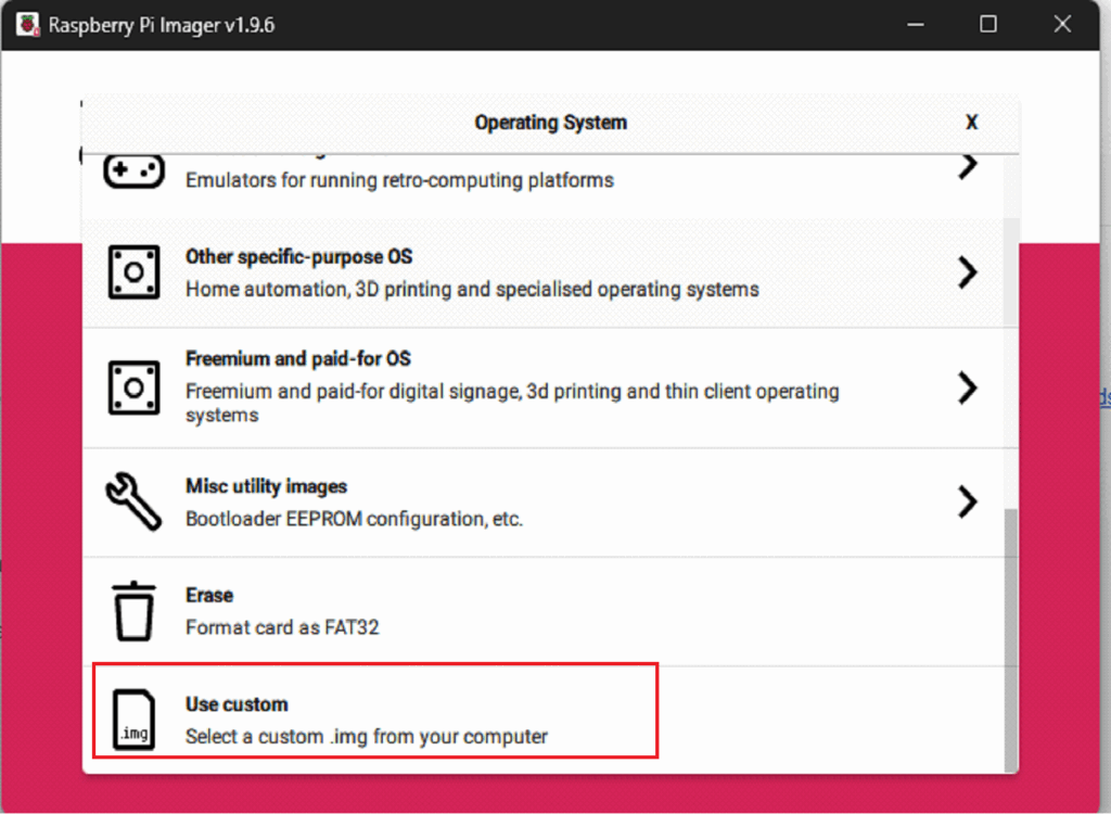 Use the Raspberry Pi Imager to create the SD card, then when selecting the OS in Raspberry Pi imager, scroll to the bottom, select “Use Custom”, and then select that .xz file you have just downloaded: